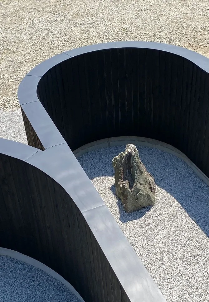 Additionally, a new front garden design, using local trees and stones, was undertaken. This offers a generous and welcoming atmosphere for guests, extending the arrival sequence and creating a deeper threshold between the street and the "Tsuboniwa" gardens.