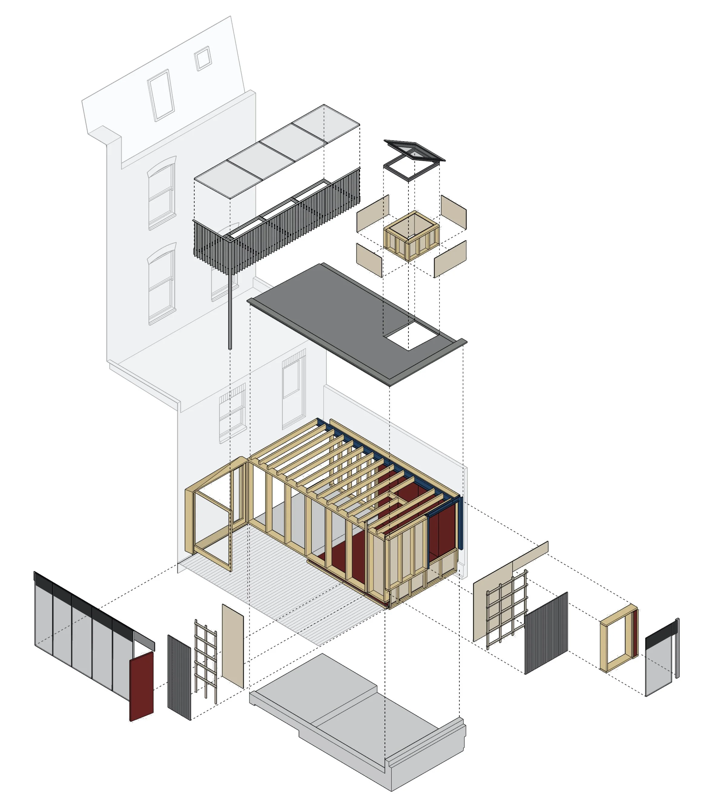 Access to the site is extremely difficult and this prompted our strategy for a utilising lightweight timber construction, with easily manageable cladding and lining elements, all sitting upon minimal concrete foundations. With our limited construction experience in mind the project was detailed simply and explored through drawings and models for a self build by ourselves, enabling us to rehearse the assembly of the structure in advance.