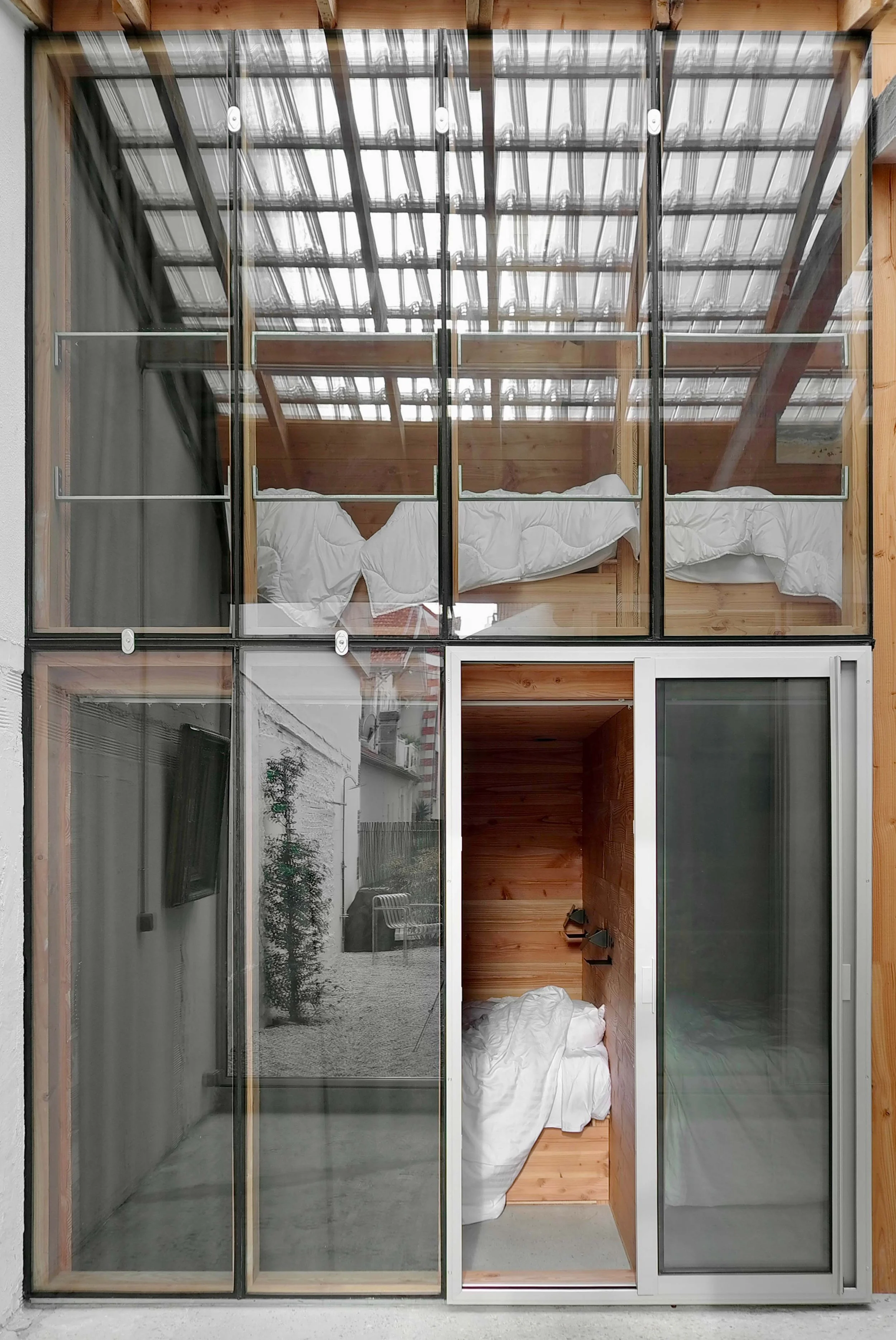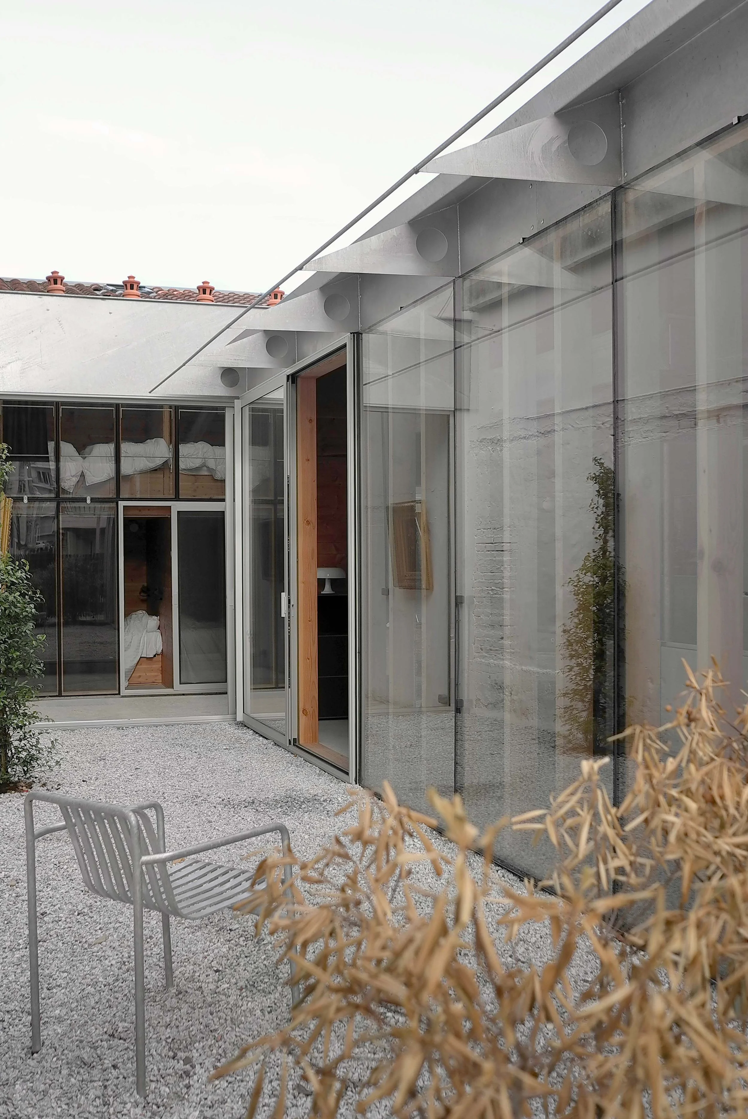 Day and night are articulated through the glasshouse: it separates, distributes, and creates a sensitive thermal buffer. It doesn’t just traverse the house — it orchestrates its functions, movement, and intimacy.