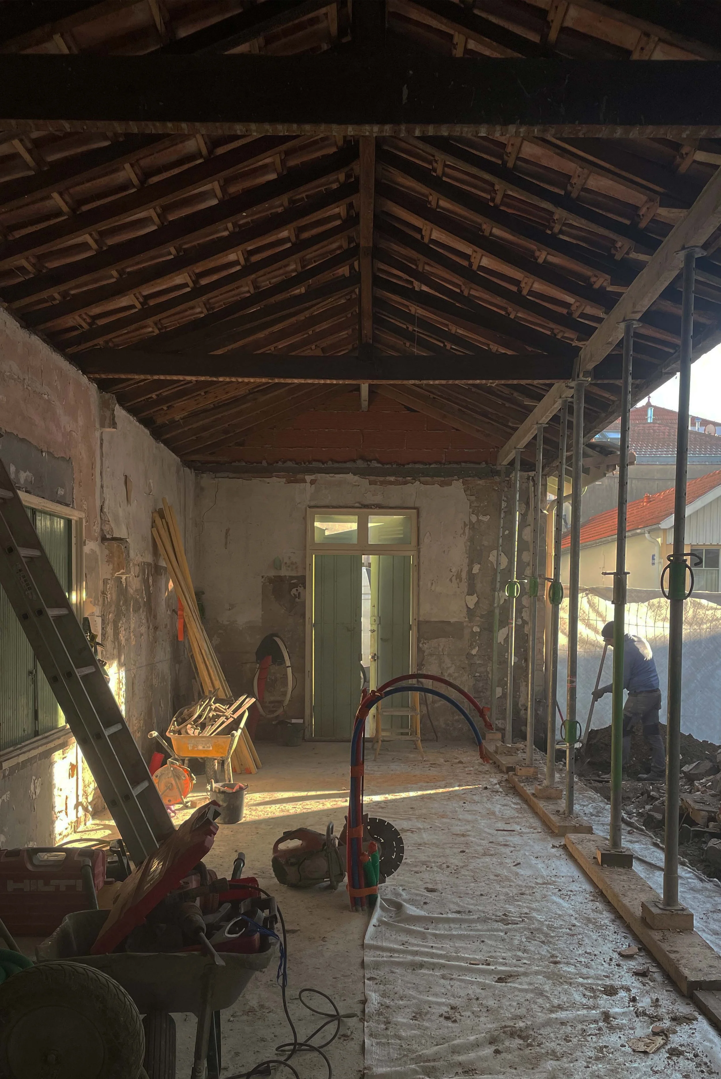 The existing structure is liberated: partitions removed, lightweight floors dismantled, superfluous spaces stripped away. Two voids are opened, cutting through the heart of the upper floors, allowing light to infuse the living areas.